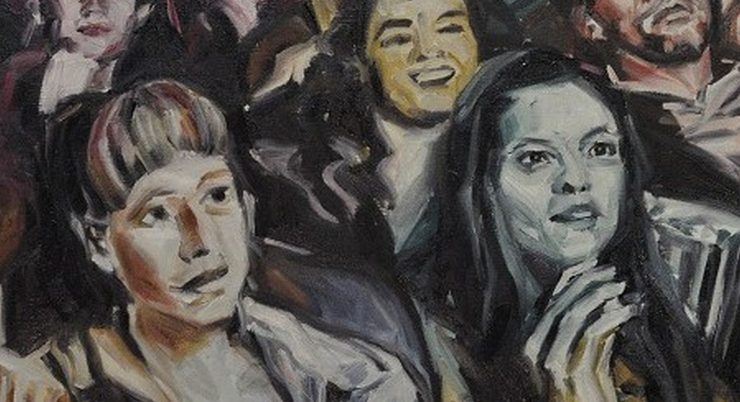 Eine kurze Folge von splitscreens versammelt Frauen in Ausnahmezuständen: aufgerissene Augen, hochgeworfene Arme, Schreie, eckige Augenbrauen, fassungslose Münder, liegend laufend stehend aufspringend. Emotionale Extremmomente, gesucht und gefunden in Stummfilmen der 1920er Jahre. (Madeleine Bernstorff)