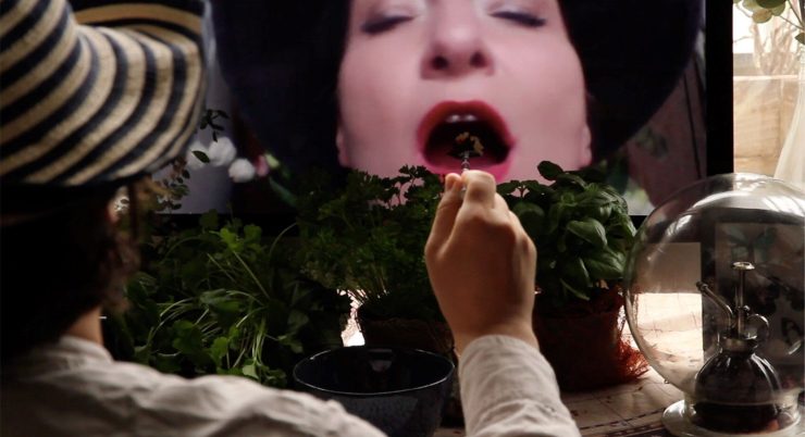 Because we are no longer able to meet friends and lovers at a shared dining table, we have resort to virtual communication via computer screens. Taking this concept to an imaginative extreme, the film depicts an encounter between two characters: One „here“ and one behind the screen, as they seek to connect around a shared meal, through all their senses.