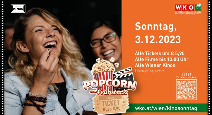 Ein Kinosonntag zum Spezialpreis: Für alle Filme, die am Sonntag, 3. Dezember bis 13.00 Uhr starten, kosten die Tickets nur € 5,90. Wir haben folgende Titel in unserem Programm und bieten zusätzlich an diesem Tag ein Frühstück bei unseren Freunden Ludwig & Adele an! Tischreservierungen erforderlich per Mail an reservierung@ludwigundadele.at.