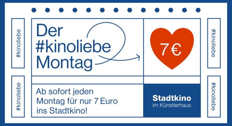 Der Montag ist im Stadtkino = #kinoliebe Montag! Analog zu einem klassischen Kinotag können Sie am Montag besonders günstig im Stadtkino Filme schauen – das Ticket kostet einheitlich 7€!