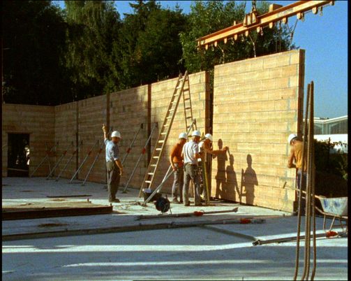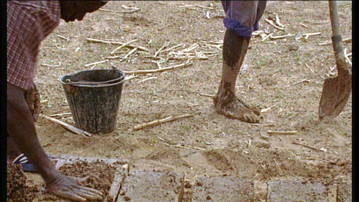 In Afrika, Indien und Europa werden Ziegelsteine produziert, aus denen Krankenstationen, Kinderheime, Schulen und Wohnhäuser entstehen. Harun Farocki beobachtet die Arbeitsschritte bei der Herstellung des Baumaterials. Per Hand, Maschine oder Roboter wird es gegossen, gebrannt oder gepresst. Je nach Produktionsland sind dabei ein einzelner oder viele Arbeiterinnen und Arbeiter beteiligt. Der Titel des Films teilt etwas Entscheidendes mit: Farocki bietet lediglich Material an, der Akt des Vergleichens zwischen traditioneller, früh- und hochindustrieller Gesellschaft liegt beim Zuschauer. Die kleinste Einheit, auf die sich der Film ausschließlich konzentriert, ist der Ziegelstein. Das verbindende Element sind Texttafeln, die knapp über den jeweiligen Ort und die Bauweise informieren. Ein weiterer Vergleich drängt sich auf: Die kleinste Einheit des 16mm-Bildes ist das Korn. Es verbindet sich mit dem Pixel, der in der Schweiz am Computer generiert wird, um einen Ziegel darzustellen, ebenso wie mit der Bleistiftzeichnung einer europäischen Architekturstudentin in Indien. Analoge und digitale Bildwelten sind mehr als Informationsträger, sie sind Teil der Produktion.